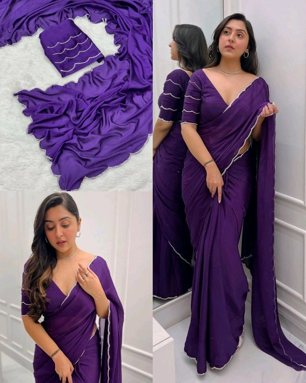Alluring Designer georgette solid purple laced saree with blouse piece