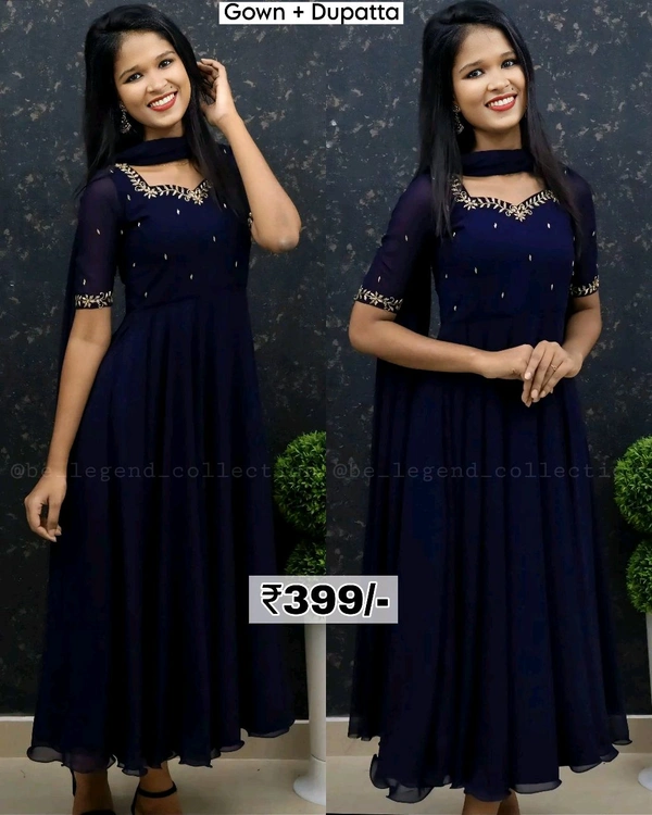 Attractive Georgette Embroidered Zari Work Gown for Women With Dupatta