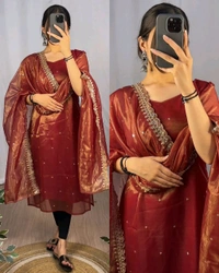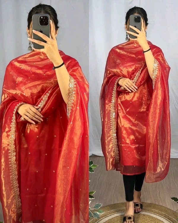 🔸DUPPTA- Banarasi Tissu With 🔸Embroidery sequence cut Work 2.2 MITR*
