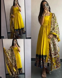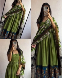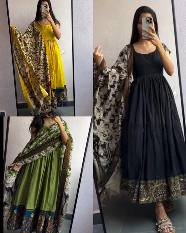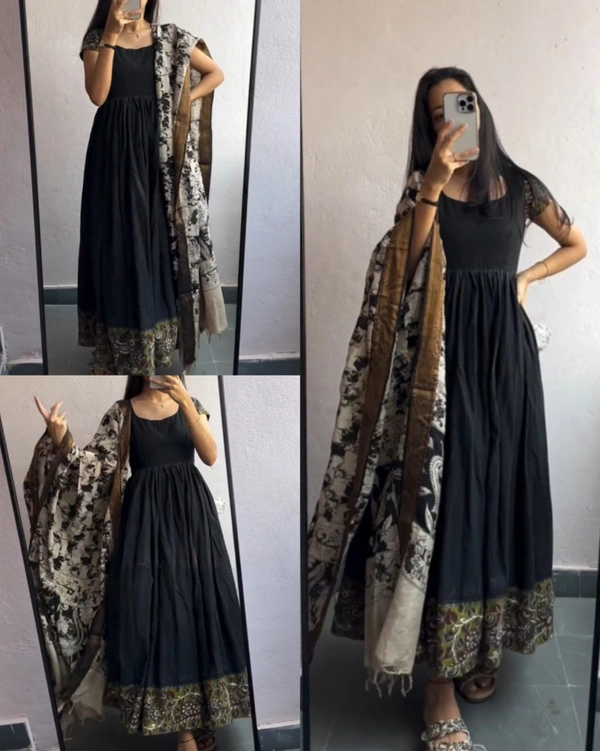 Cotton Kurti Gown with full Side Banarasi Border dupattaGOWN+DUPATTA SET