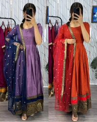 Draped in the rich elegance of anarkali with stunning traditional borders. Feeling regal and ready for the festivities!