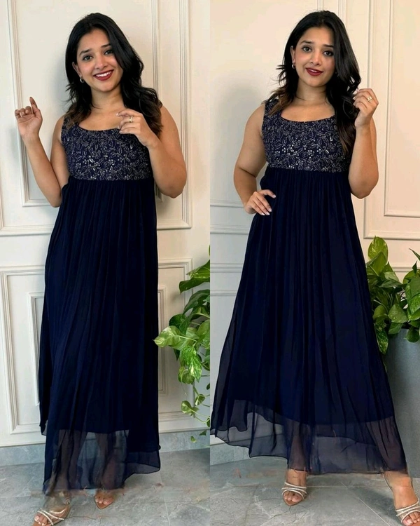 Elevate your wardrobe with this Georgette Stitched Embroidered Anarkali gown.