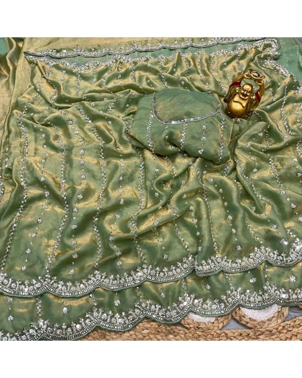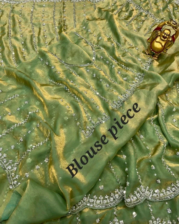 🔸BLOUSE FABRIC-* Space silk with beeds work