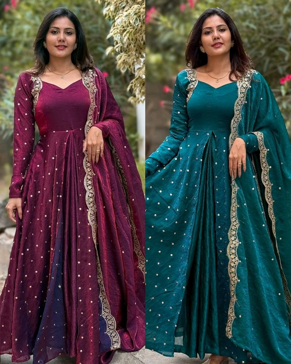 Launching Heavy Designer Party Wear Look Gown-Dupatta and Bottom with Heavy Embroidery Sequence Work