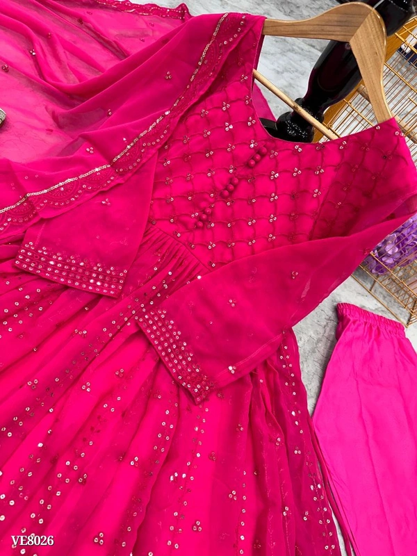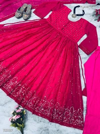 🔸GOWN FABRIC :HAVY FOUX GOARGATE WITH EMBROIDERY WORK AND FULL SLEEVES