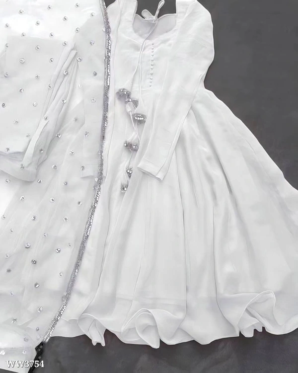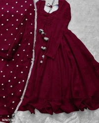 🔸GOWN FABRIC :HAVY FOUX GOARGATE WITH HAVY RUFFLE WORK WITH FULL SLEEVES AND LATKAN