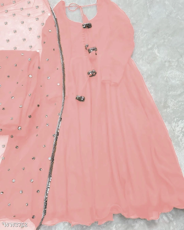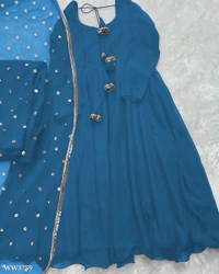 🔸GOWN FABRIC :HAVY FOUX GOARGATE WITH HAVY RUFFLE WORK WITH FULL SLEEVES AND LATKAN