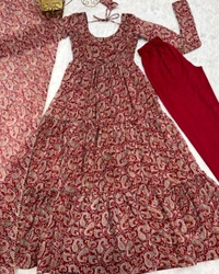 *YOKE LACE WORK,FULL CHURIDAR SLEEVES ,PADDED,SIDE ZIPPER,THREE LAYER GATHERING*