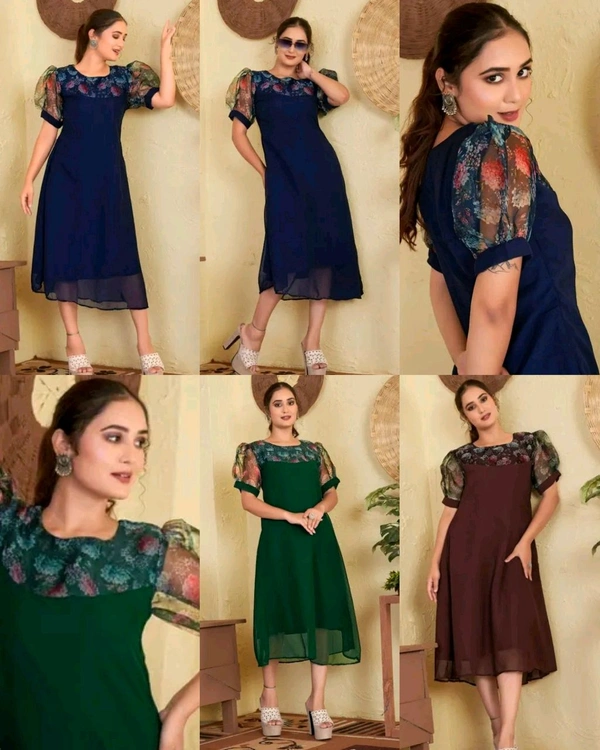 🔸Fabric: Material:- Fox Georgette with beautiful organza print sleeve and neck