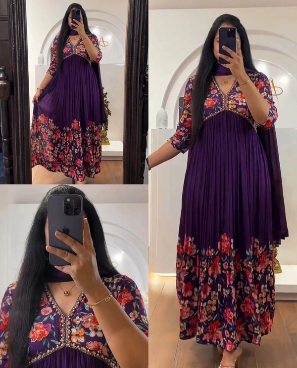 🔸Fabric: Heavy Chinon with Digital Floral Print Work