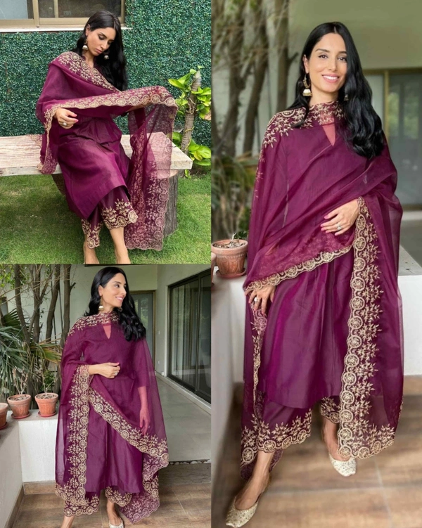 Trendy Embroidery Work Gown
