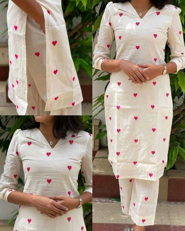 Trendy Red Heart Women's Kurti And Pant Co-ords Set